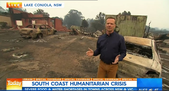 Následující fotky jsou ze Štědrého dne, kdy se pobřežní ulicí na břehu jezera Lake Conjola na jižním pobřeží Austrálie prohnal obrovský výbuch ohně. Podle svědků trval jen několik minut, avšak zničil celou ulici (89 domů).